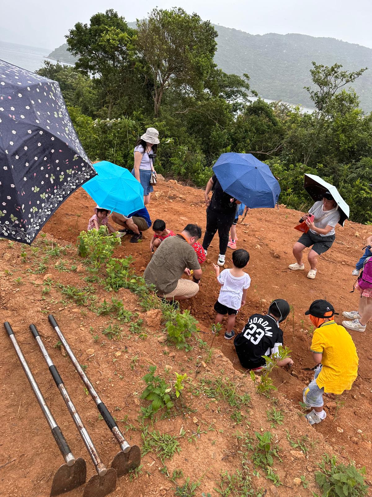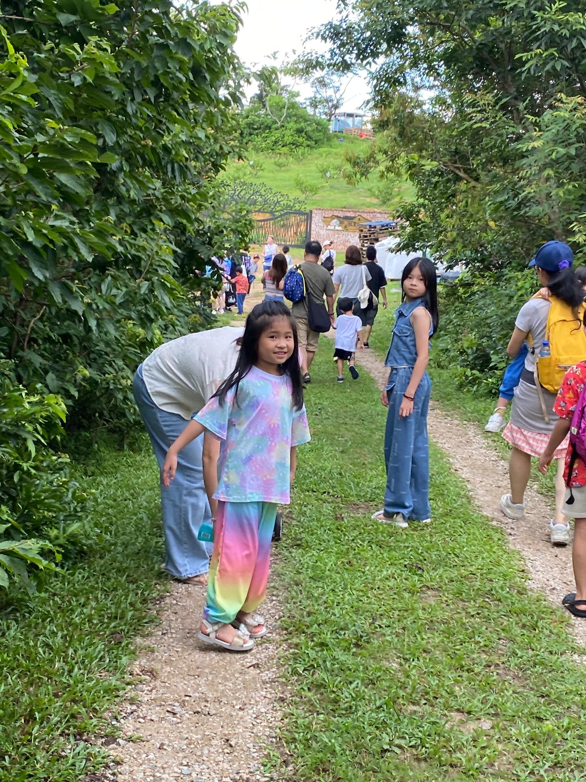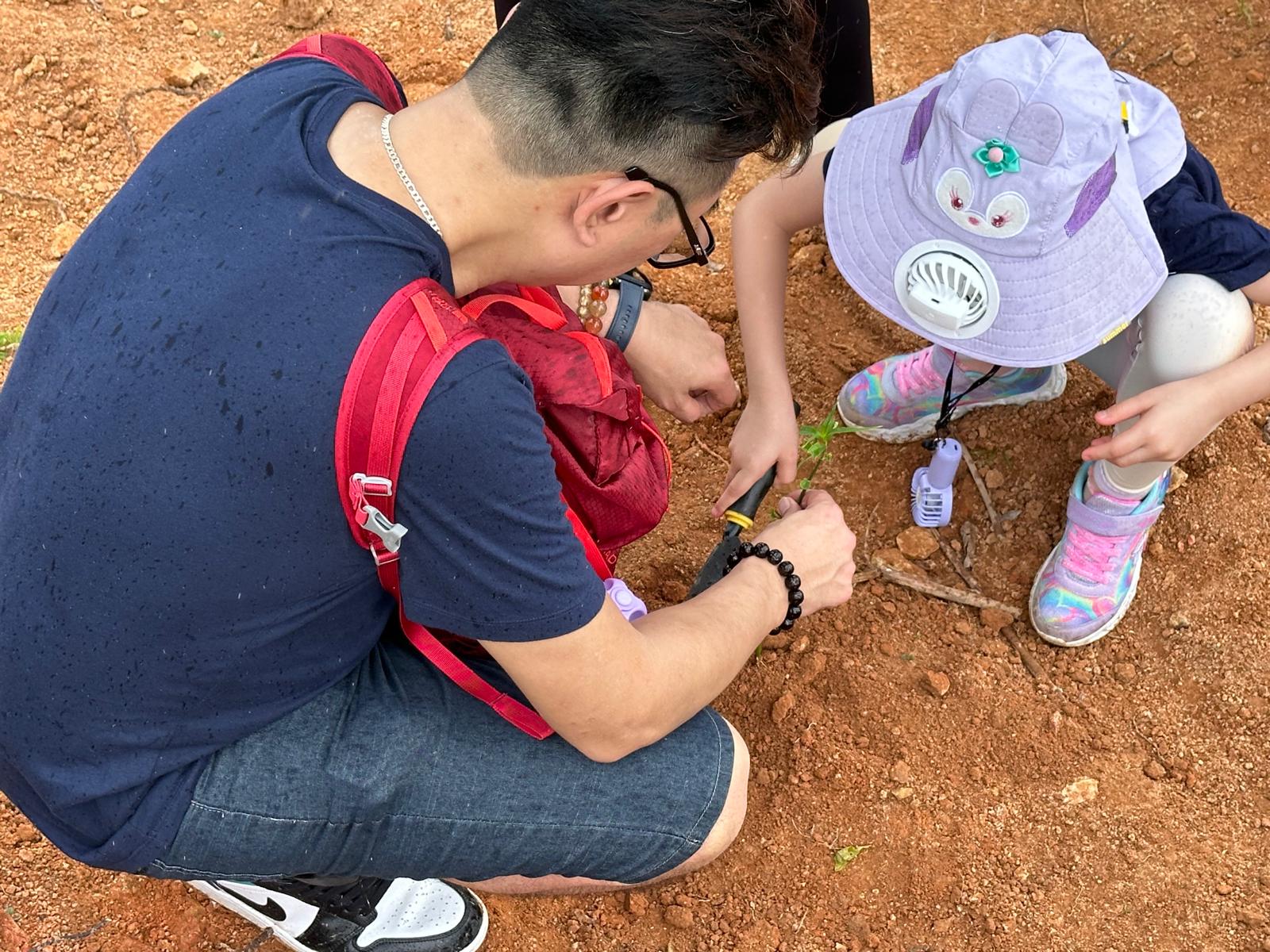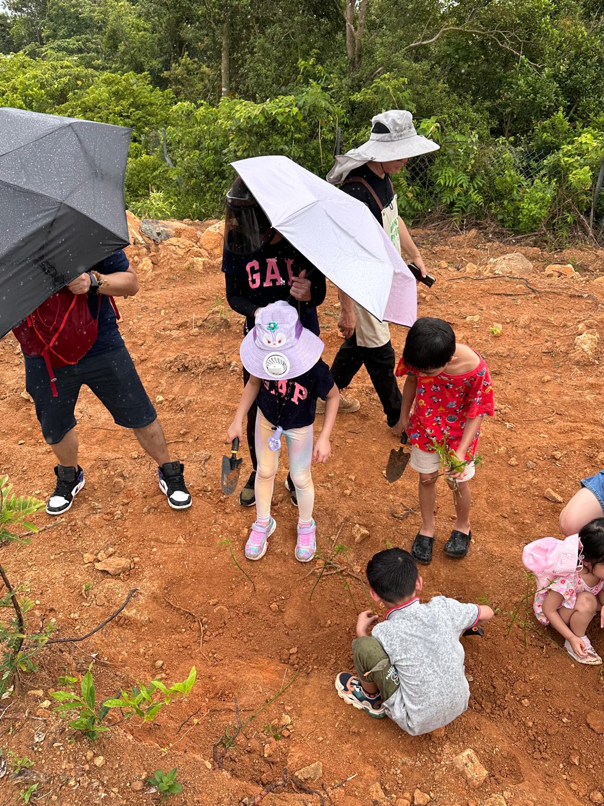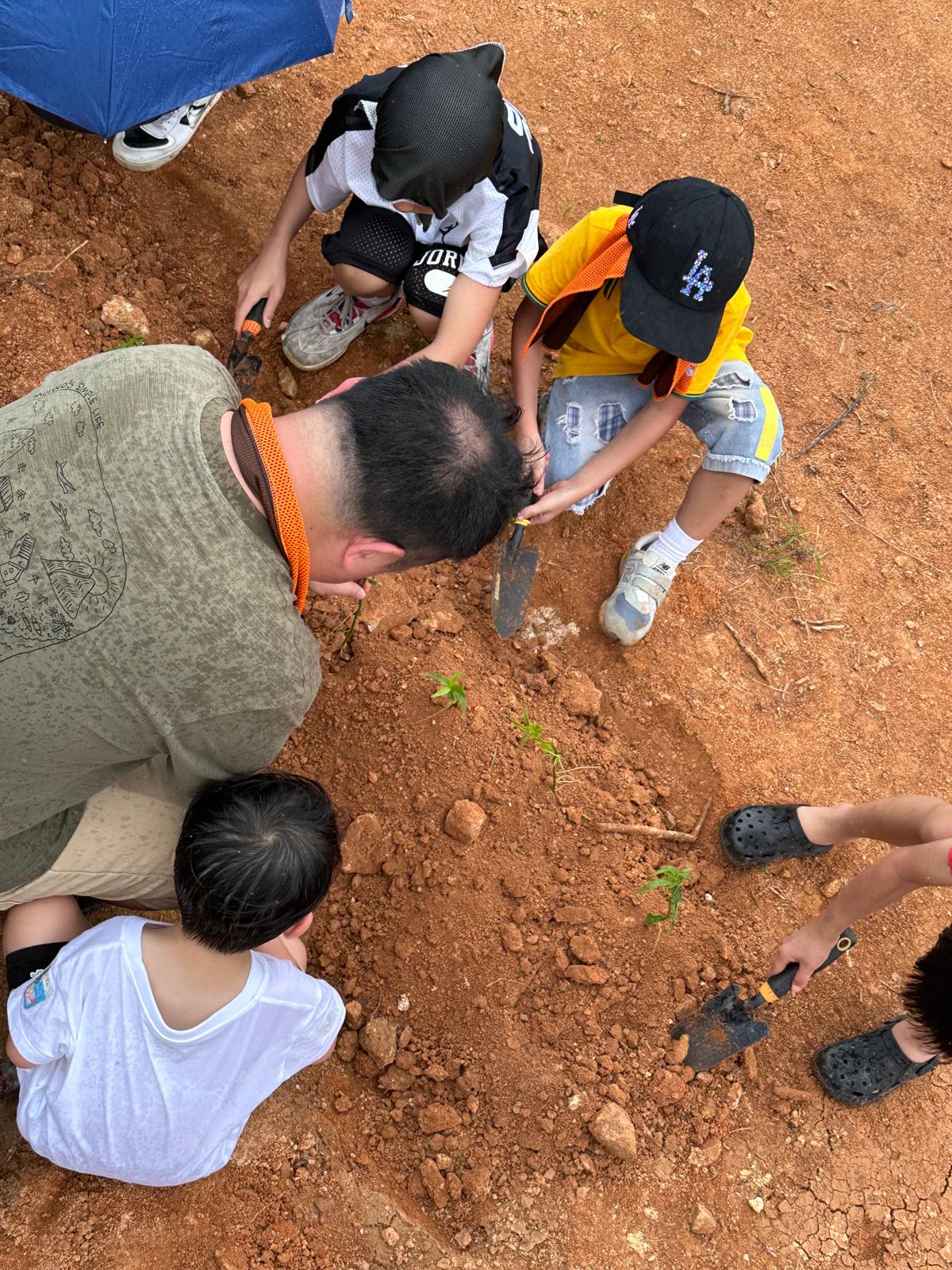 家長們帶著小朋友一起浩浩蕩蕩來到了郊外農場。一行人走在草地上,聞著清新的青草味,聽著農友細數農作物的種植過程,沿路見到各式各樣的果樹、有機蔬菜、中草藥。小朋友們在空地上踴躍地跟著農友學習開墾土壤、種植小樹苗,說以後要好好愛護大自然、保護環境、還有要珍惜食物,不要浪費。