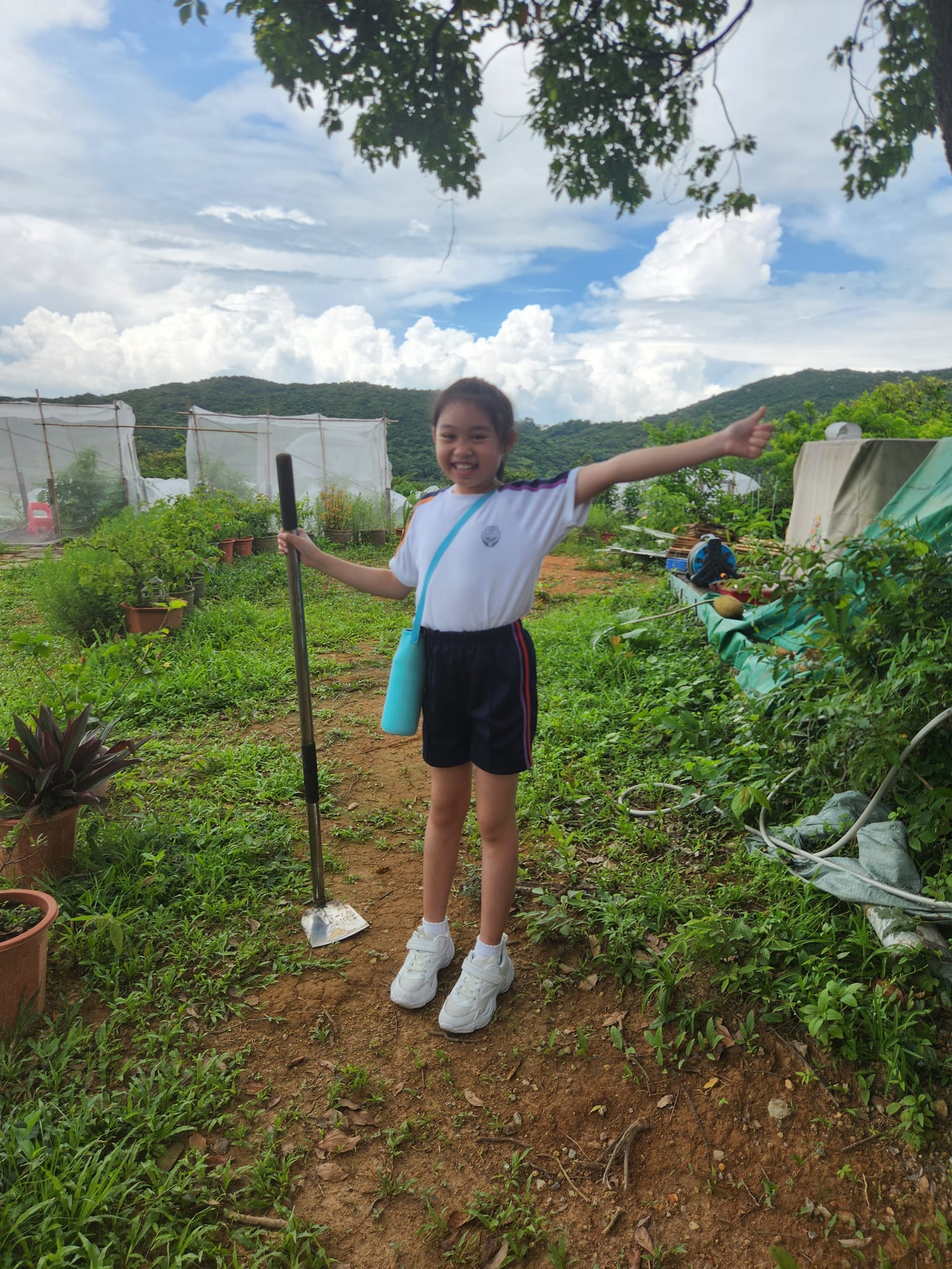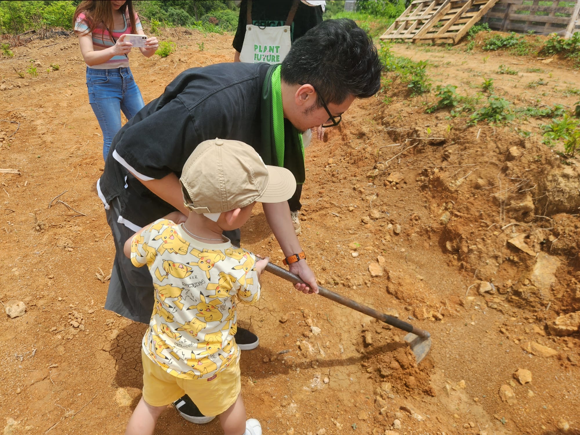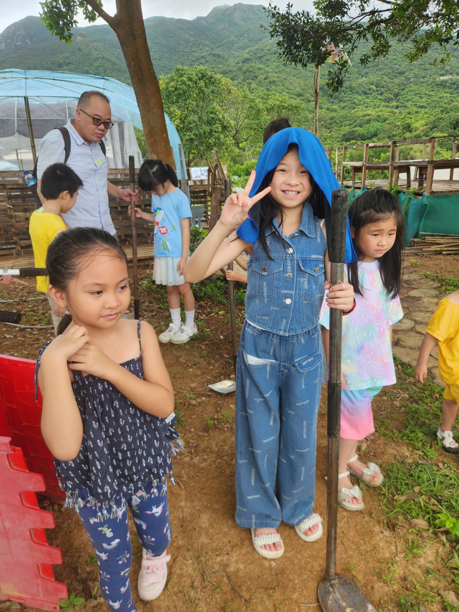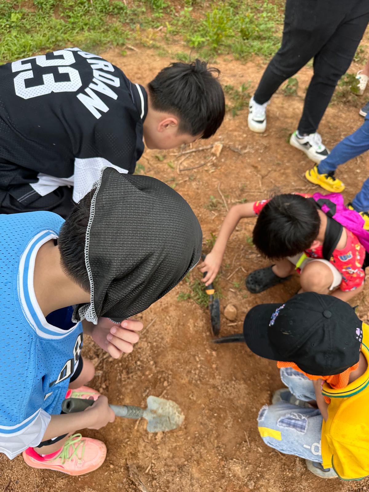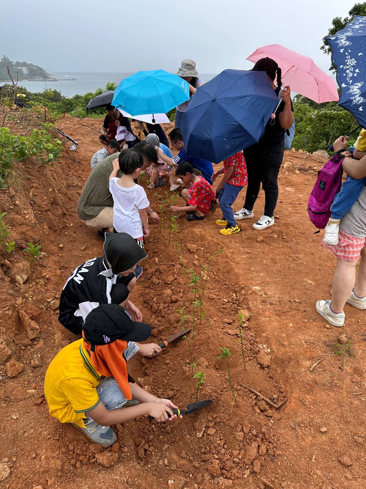 家長們帶著小朋友一起浩浩蕩蕩來到了郊外農場。一行人走在草地上,聞著清新的青草味,聽著農友細數農作物的種植過程,沿路見到各式各樣的果樹、有機蔬菜、中草藥。小朋友們在空地上踴躍地跟著農友學習開墾土壤、種植小樹苗,說以後要好好愛護大自然、保護環境、還有要珍惜食物,不要浪費。