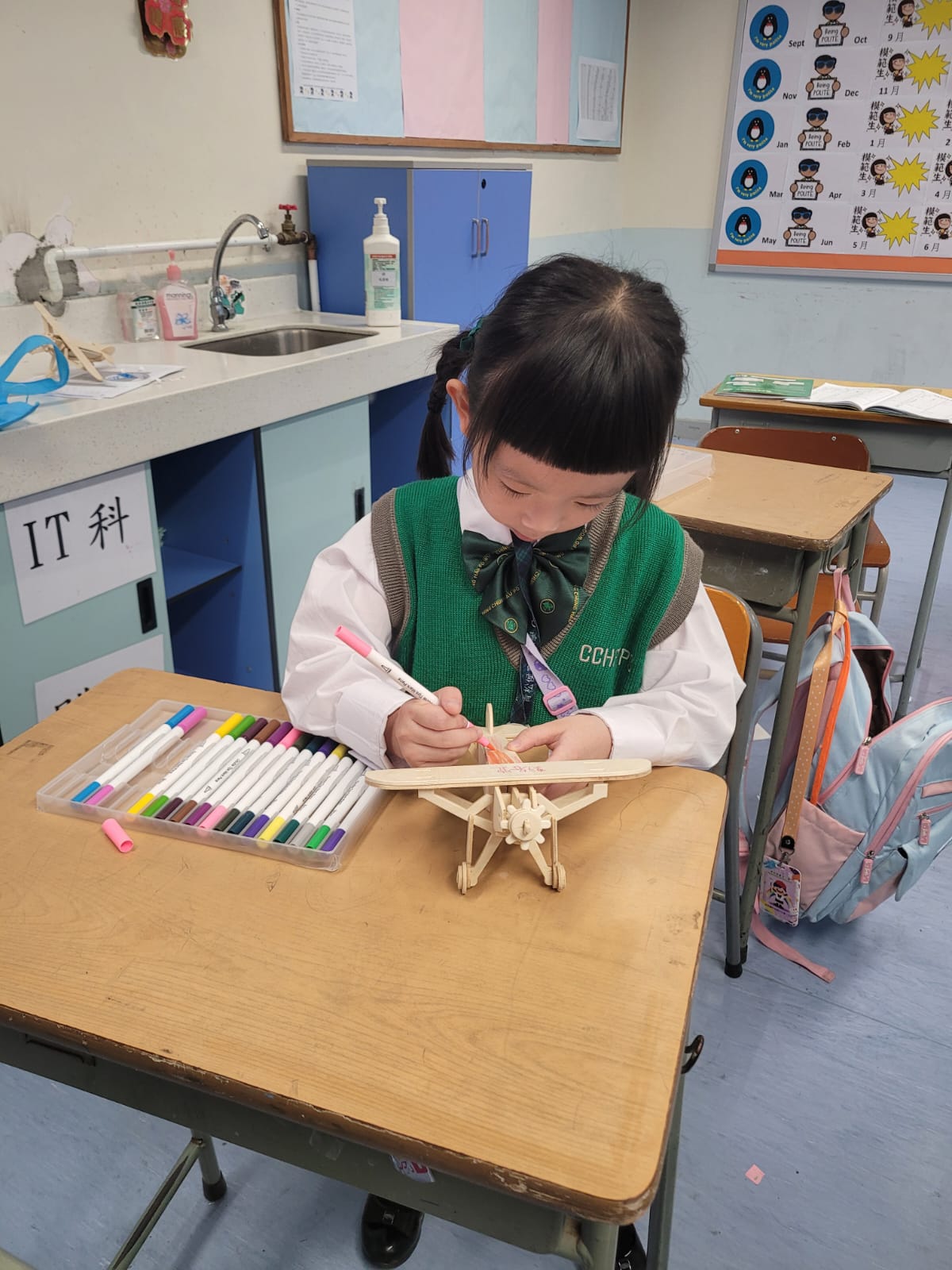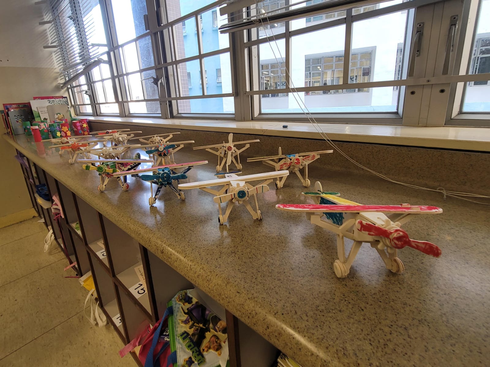 四十多名小朋友親手製作的飛機在學校裡齊齊降落。在導師的指導下,大家化身為小小工程師,親手製作飛機及為它上色,每架飛機都獨一無二,色彩繽紛!